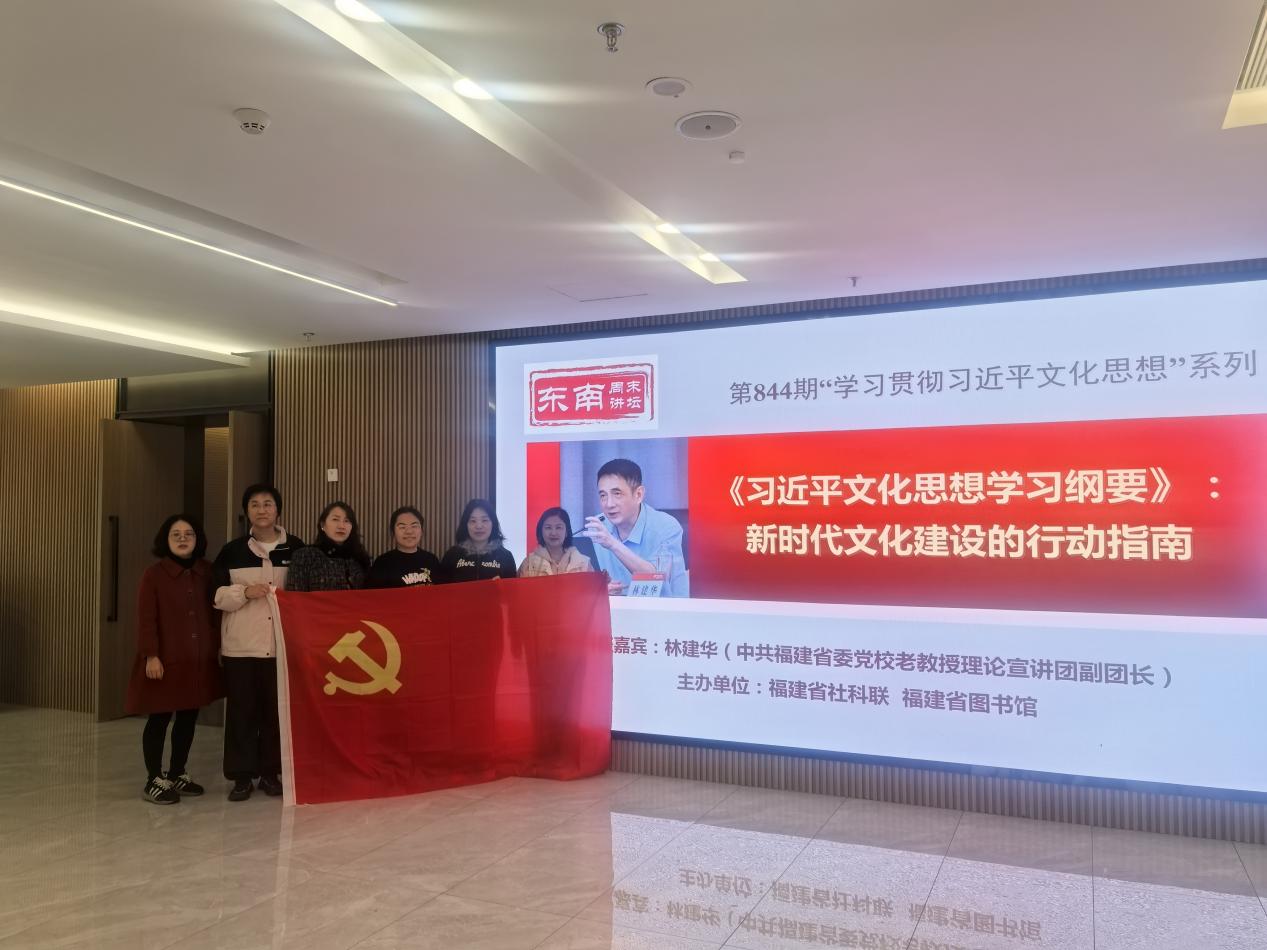 為深入學習貫徹習近平文化思想,深化新時代文化建設(shè)理念,2025年3月29日上午,圖書館黨支部全體黨員及十余名學生志愿者赴福建省圖書館,為讀者開展志愿服務(wù)及主題黨日活動。參與福建省圖書館《閩圖大學堂》“學習貫徹習近平文化思想”系列講座。