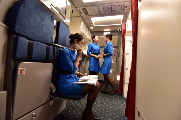 從地面的值機、驗證、安檢、登機開始,就感受到18空中乘務(wù)的同學燦爛的笑容和專業(yè)的素質(zhì)??此茝碗s的程序,在同學們熟練的操作引導下,“乘客們”快速有序地登上這架航班。