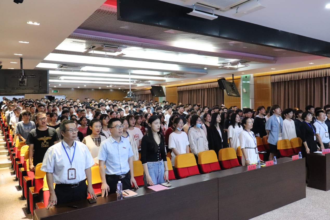 全體師生起立唱國歌,開學(xué)典禮在莊嚴肅穆的國歌聲中正式拉開帷幕。