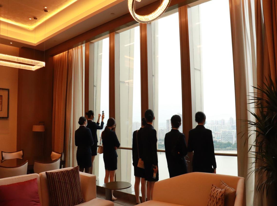 2020年10月21日下午,在輔導員范聲斌老師帶領下,2019級空乘1班共47名學生到達福州融僑皇冠假日酒店進行課程實踐參觀。