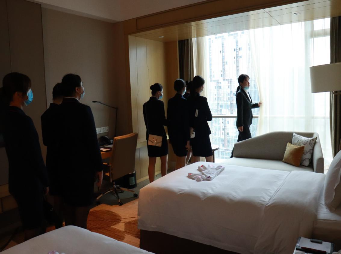 同學們先后參觀了總統(tǒng)套房、商務套房、中餐廳、日式餐廳、大宴會廳、室內恒溫游泳池、健身房及SPA。酒店部門負責人羅經理向同學們介紹了酒店的整體情況,讓同學們切身感受到了實際操作能力的重要性。同時,參加參觀同學也意識到作為酒店工作人員不僅要對酒店知識熟悉,個人的綜合素質和人格魅力也同樣是不可獲缺的職業(yè)要素。