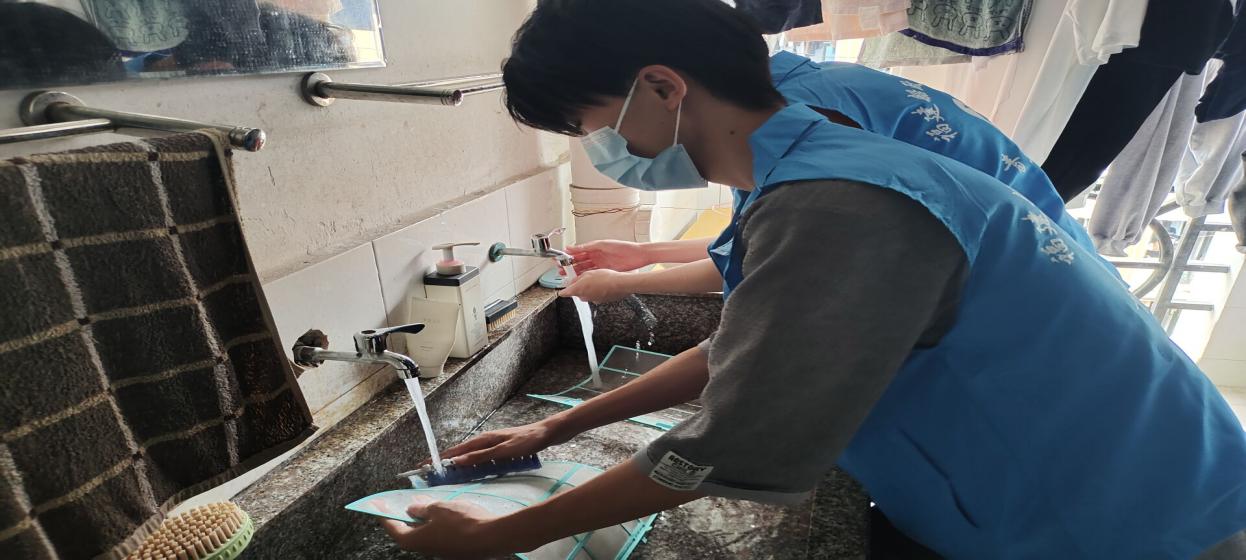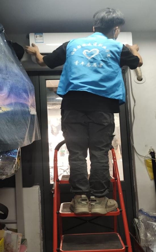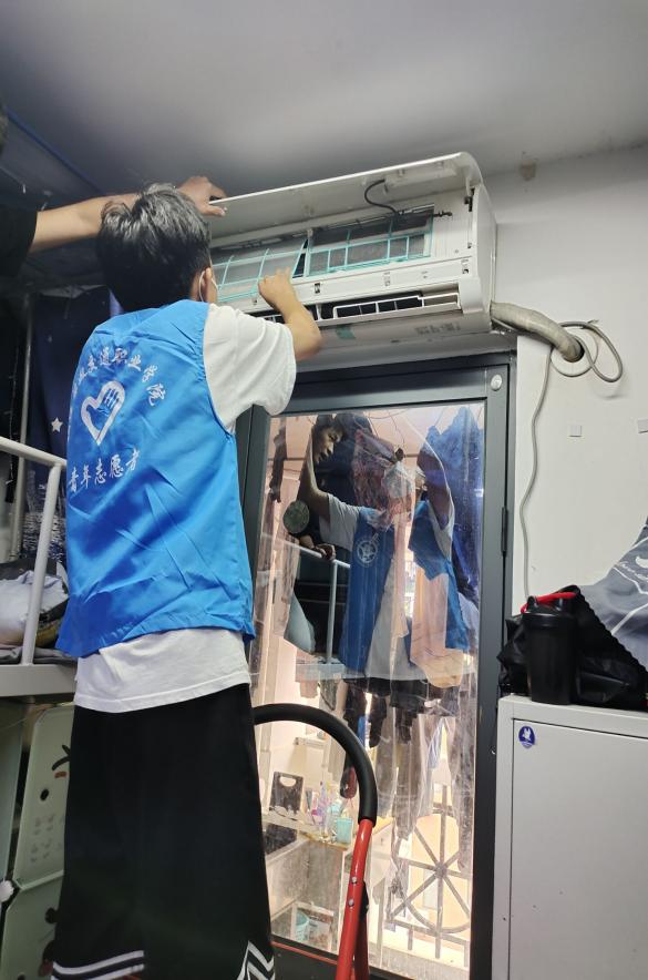 志愿者在負(fù)責(zé)人的帶領(lǐng)下各司其職,積極主動地敲響每一間宿舍的門,詢問同學(xué)們是否有清洗空調(diào)的需要。對有些不太了解清晰空調(diào)重要的同學(xué),志愿者們都會在清洗的過程中給他們科普。志愿者們經(jīng)過事先的訓(xùn)練,掌握了清洗空調(diào)的辦法,在給同學(xué)們提供服務(wù)的過程中能很熟練地取出機(jī)內(nèi)濾網(wǎng),清洗空調(diào)外殼、出風(fēng)口,最后再重新組裝回去,在此過程中的每一步他們都配合得十分默契。志愿者們?yōu)橥瑢W(xué)服務(wù)的精神,給我們樹立了榜樣。
