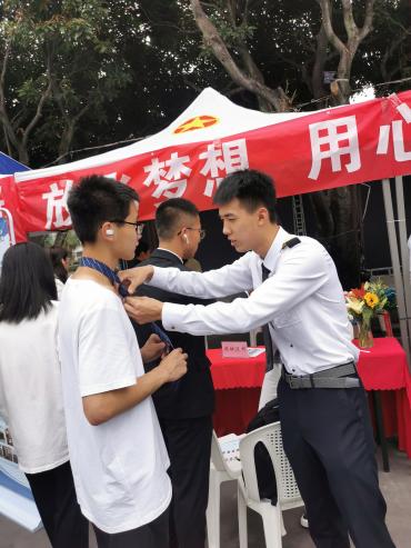在現(xiàn)場,空乘專業(yè)的師生們搭建了化妝工位、發(fā)型塑造工位、絲巾工位、領(lǐng)帶工位,通過絲絲入扣教現(xiàn)場的來賓絲帶的配搭技巧,紳士酒窩來教授如何正確的進(jìn)行系領(lǐng)帶,青絲萬縷幫來賓們盤發(fā),告訴來賓如何更好的打理自己的發(fā)型,展示自己,濃妝淡抹是當(dāng)天最受歡迎的展臺,絡(luò)繹不絕的來賓到這里學(xué)習(xí)在職場在生活中,如何得體的化妝,展示更好的自己。