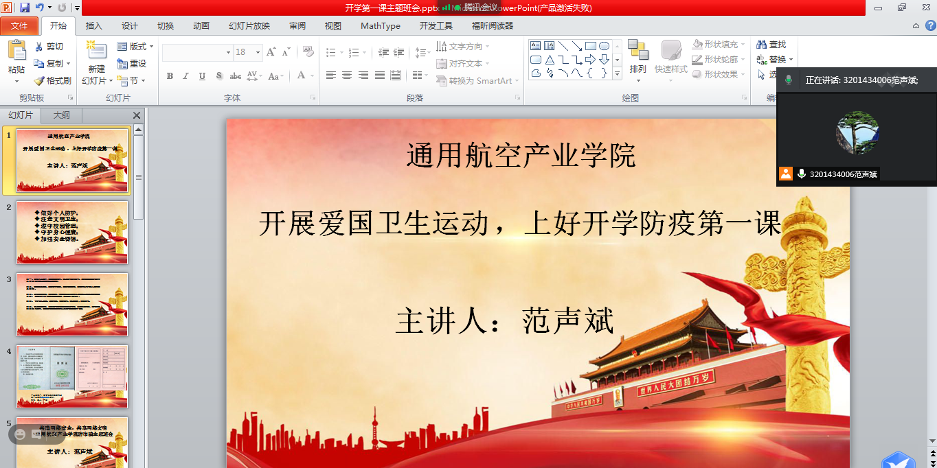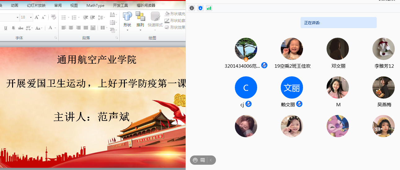 為大力開展新時代校園愛國衛(wèi)生運動,弘揚新時代偉大抗疫精,進一步加強新冠肺炎防護知識的培訓和宣傳教育,增強我院學生防護意識、提升科學防疫能力,以充分而有序的準備迎接秋季學期復(fù)學,按照學校秋季開學的工作要求,通用航空產(chǎn)業(yè)學院分別于8月7日、8月9日召開線上、線下“開學第一課”,由輔導員范聲斌,班主任陳瑞娟、陳巧玲主持。