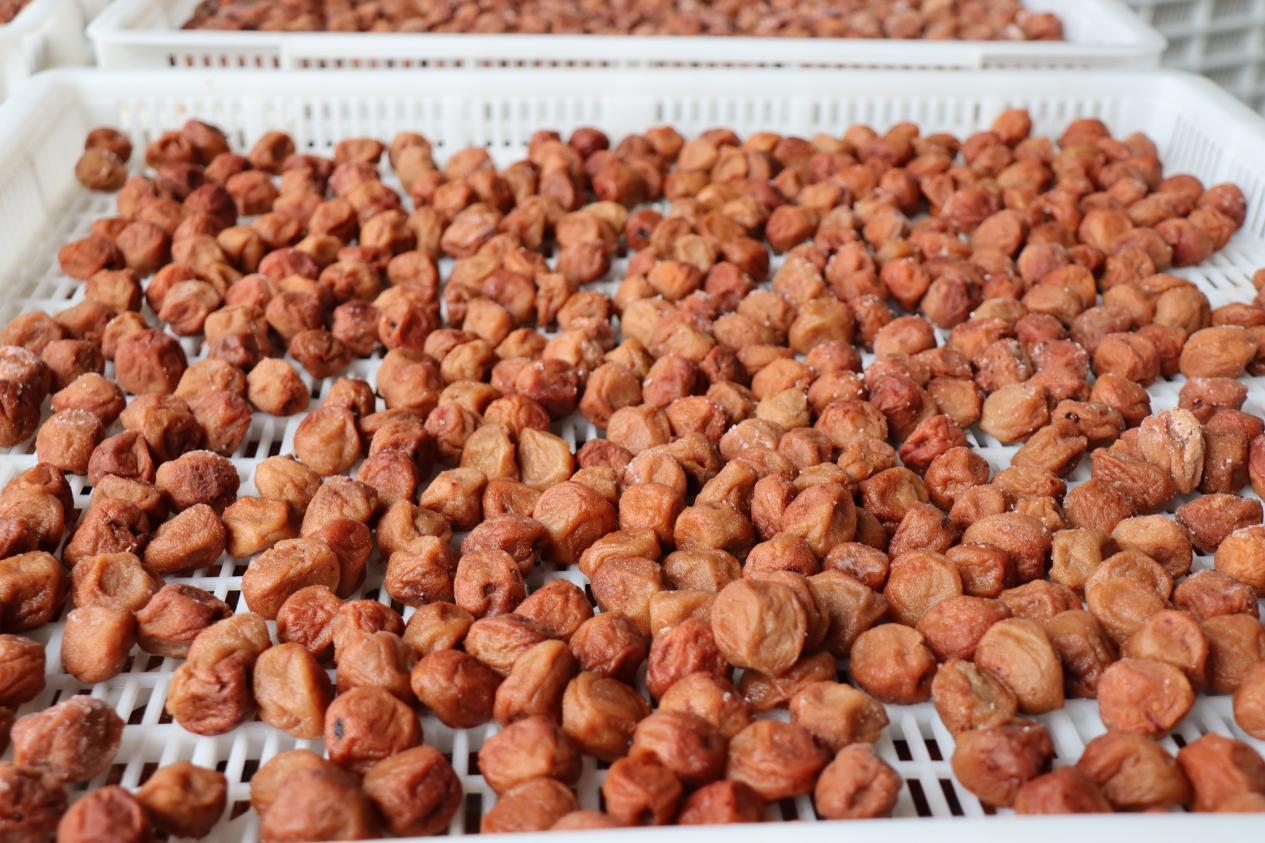 隊(duì)員們帶上口罩、防塵頭套,對(duì)手部、鞋底進(jìn)行消毒殺菌處理,凈化衣服上的塵埃微生物。經(jīng)過(guò)一系列衛(wèi)生處理后隊(duì)員們進(jìn)入了食品加工間。了解了青梅蜜餞的制作流程,從采摘、清洗、腌制、日曬、分級(jí)、去雜質(zhì)、去核、調(diào)味、過(guò)濾、糖漬到晾曬歷經(jīng)11道工序。