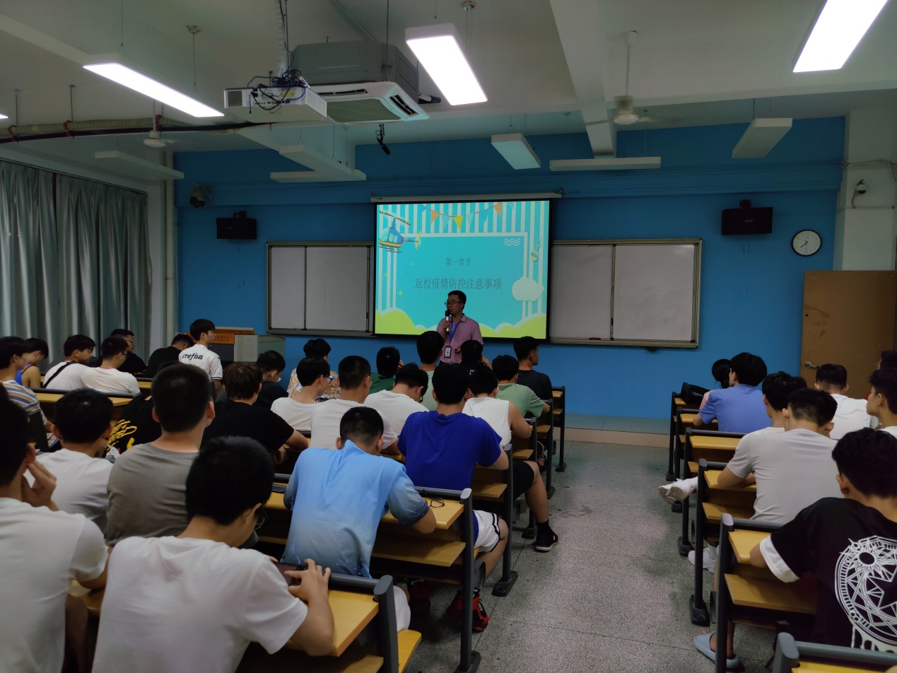 9月5日晚,輔導(dǎo)員范聲斌、輔導(dǎo)員陸李欽及各班班主任,分別在31號(hào)樓308教室,給2020級(jí)全體學(xué)生召開反詐騙安全教育暨開學(xué)第一課主題班會(huì)。輔導(dǎo)員、班主任從返校疫情防控注意事項(xiàng)、傳染病防控知識(shí)教育、法律法規(guī)知識(shí)教育