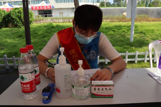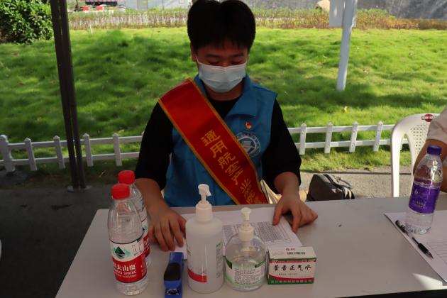 返校當天早晨,相關工作人員和志愿者們就提前來到學生返校報到現(xiàn)場,清點防疫物資,統(tǒng)一佩戴防護口罩并進行體溫測量。