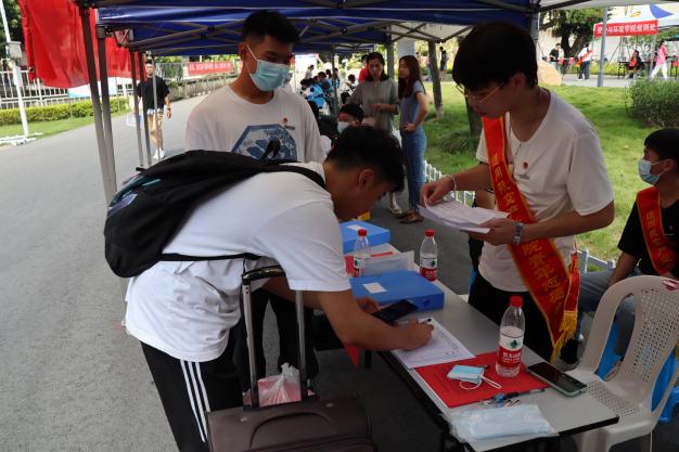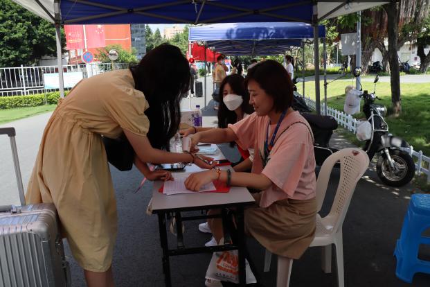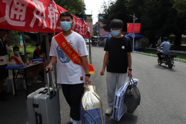 學院報到處,“同學,你好,歡迎回家!”“同學,你好,請出示健康碼、大數(shù)據(jù)通信行程碼、核酸檢測報告。”