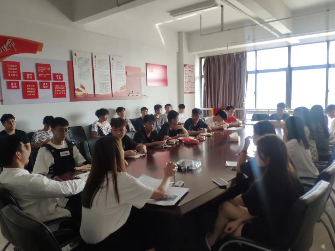 10月9日中午,輔導員、學生干部、新生助教在會議室,共同商議新生入學報到流程、布置,以及準備相關(guān)材料。