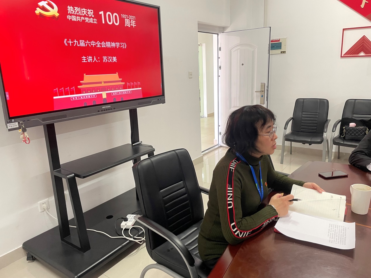 開(kāi)班儀式結(jié)束后,黨總支副書(shū)記蘇漢美為大家講授培訓(xùn)班第一講《十九屆六中全會(huì)精神學(xué)習(xí)》。課上,黨總支副書(shū)記蘇漢美從審議通過(guò)2個(gè)文件、總結(jié)重大成就和歷史經(jīng)驗(yàn)的3個(gè)“需要”、馬克思主義中國(guó)化的3次飛躍、百年歷程創(chuàng)造的4個(gè)偉大成就、黨的百年奮斗的5大歷史意義等幾個(gè)方面給全體學(xué)員解讀十九屆六中全會(huì)精神,引導(dǎo)學(xué)員樹(shù)立堅(jiān)定的理想信念。同時(shí),她和全體學(xué)員交流三點(diǎn)體會(huì):一是要樹(shù)立共產(chǎn)黨人的信仰信念;二是要保持共產(chǎn)黨人的昂揚(yáng)朝氣;三是要弘揚(yáng)共產(chǎn)黨人的奉獻(xiàn)精神。