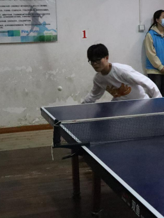 “乒乒乓乓”的響聲來自于這十余張球桌,沒錯,這就是咱們“國球”的比賽現(xiàn)場了。只聽裁判哨聲一響,兩兩搭檔的同學立刻開始了傳球。每位同學都將全部的精力都放在那一顆小小的球上,漂亮的擊打、驚險的救球和每一聲清脆的乒乓球落桌聲,都在哨聲再一次響起時化作不斷的歡呼聲。