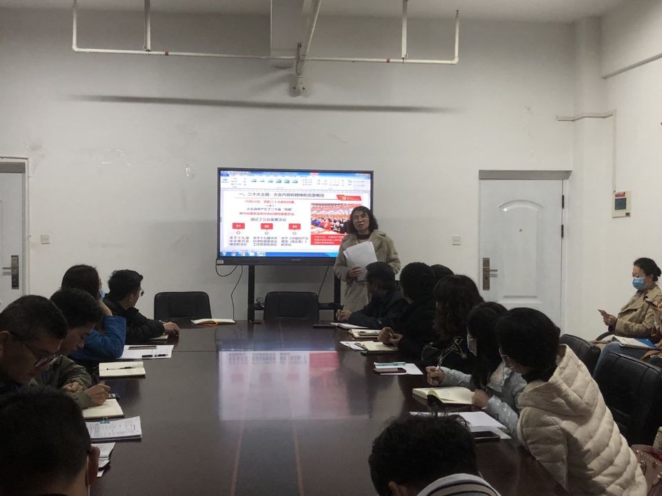 她希望,全體黨員干部要深入學(xué)習(xí)貫徹黨的二十大精神,要始終牢記為黨育人、為國育才的初心使命,堅(jiān)持立德樹人的根本任務(wù)。同時,她結(jié)合學(xué)院的中心工作,對切實(shí)做好疫情防控、安全穩(wěn)定、學(xué)生管理、意識形態(tài)等重點(diǎn)任務(wù)提出了具體要求,號召全體老師牢固樹立“以生為本”的理念,深刻領(lǐng)會把握黨的二十大精神實(shí)質(zhì)和豐富內(nèi)涵,把思想和行動統(tǒng)一到黨的二十大精神上來。