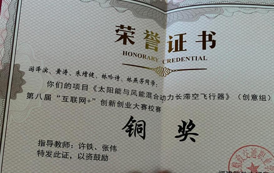 社團(tuán)成員出于對(duì)航空器的熱愛(ài),以解決航空器動(dòng)能不足的問(wèn)題為出發(fā)點(diǎn),自主設(shè)計(jì)研發(fā)太陽(yáng)能與風(fēng)能混合動(dòng)力的飛行器,參加院校互聯(lián)網(wǎng)+創(chuàng)新創(chuàng)業(yè)大賽。取得優(yōu)秀名次。