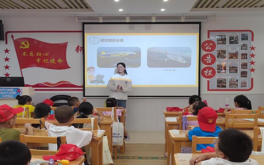 社團(tuán)成員在三下鄉(xiāng)活動(dòng)中科普航空知識(shí)