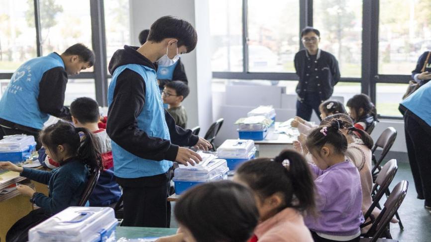 航模志愿者活動(dòng)中引導(dǎo)小朋友制作航模