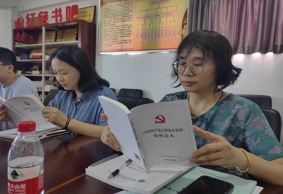 會上,黨總支書記副書記蘇漢美領(lǐng)學了《中國共產(chǎn)黨紀律處分條例》政治紀律和組織紀律部分。與會同志圍繞“黨的政治紀律和組織紀律”主題,結(jié)合思想工作實際,把自己擺進去、把職責擺進去、把工作擺進去,分享學習心得、交流學習體會。
