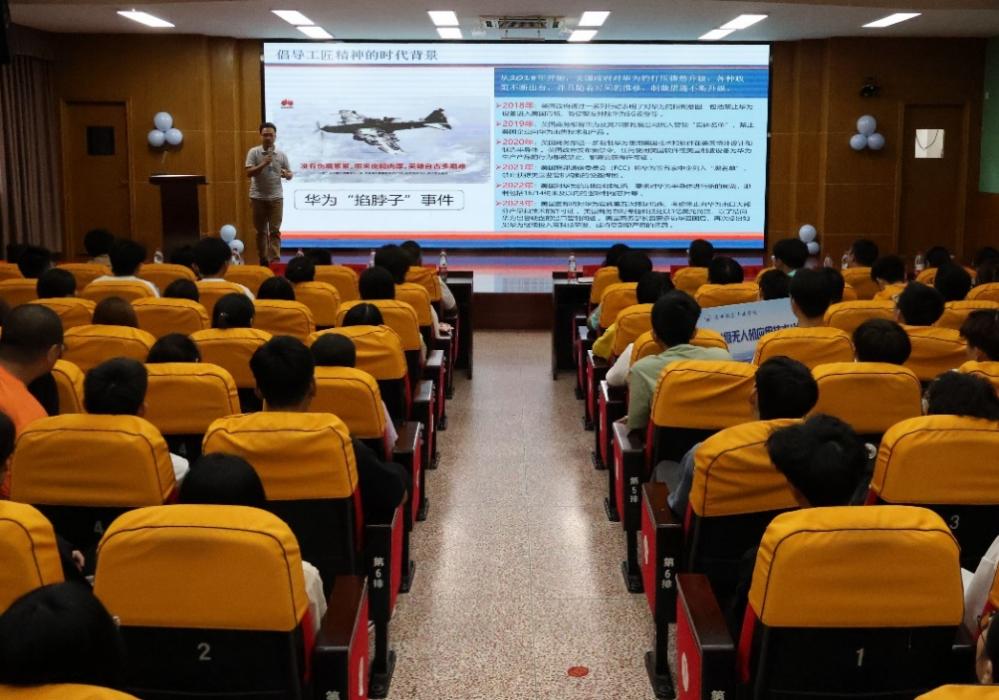 隨后肖老師列舉華為“掐脖子事件”,強(qiáng)調(diào)了工匠精神的重要性。我們作為航空相關(guān)從業(yè)人員,接觸科技最前沿的產(chǎn)物,更應(yīng)注重培養(yǎng)自身工匠精神,成為大國(guó)工匠。