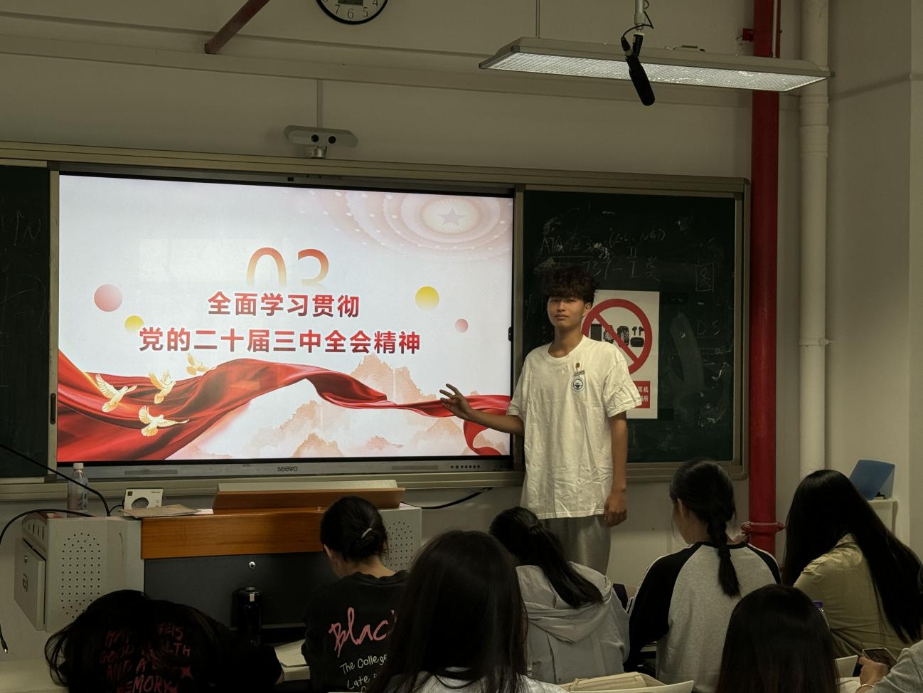 林欣妮同學(xué)告誡同學(xué)們無論是在學(xué)習(xí)中還是生活中,應(yīng)當(dāng)積極應(yīng)用黨的先進(jìn)思想理念,認(rèn)真學(xué)習(xí)黨的二十屆三中全會(huì)精神的內(nèi)涵、意義和要求,積極參加學(xué)校組織的相關(guān)學(xué)習(xí)活動(dòng)、主題班會(huì)、講座等,通過學(xué)習(xí)不斷加深對(duì)會(huì)議精神的理解??梢岳谜n余時(shí)間閱讀相關(guān)的書籍、文章,關(guān)注官方媒體的解讀和報(bào)道,提升自己的政治理論素養(yǎng)。