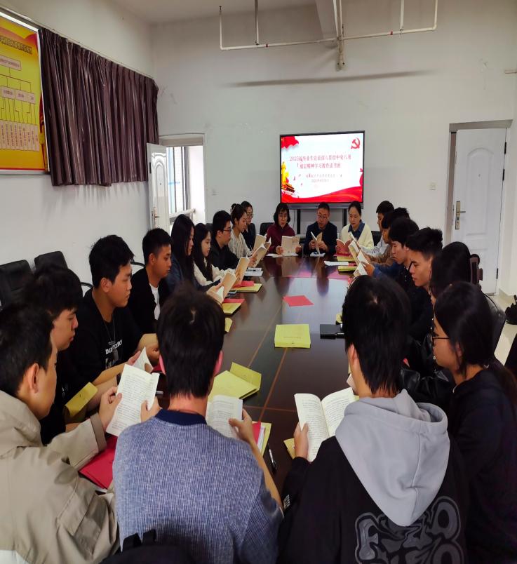 支部副書記陸李欽領(lǐng)學(xué)《習(xí)近平關(guān)于加強黨的作風(fēng)建設(shè)論述摘編》第八章節(jié)“使黨的作風(fēng)全面純潔起來,以優(yōu)良作風(fēng)帶動社風(fēng)民風(fēng)向上向善”,提醒畢業(yè)生黨員離校不離黨,要把深入貫徹中央八項規(guī)定精神學(xué)習(xí)教育作為當(dāng)前最大的政治任務(wù)。叮囑畢業(yè)生黨員要筑牢理想信念根基,守住拒腐防變防線,扣好廉潔從業(yè)的“第一??圩印?。