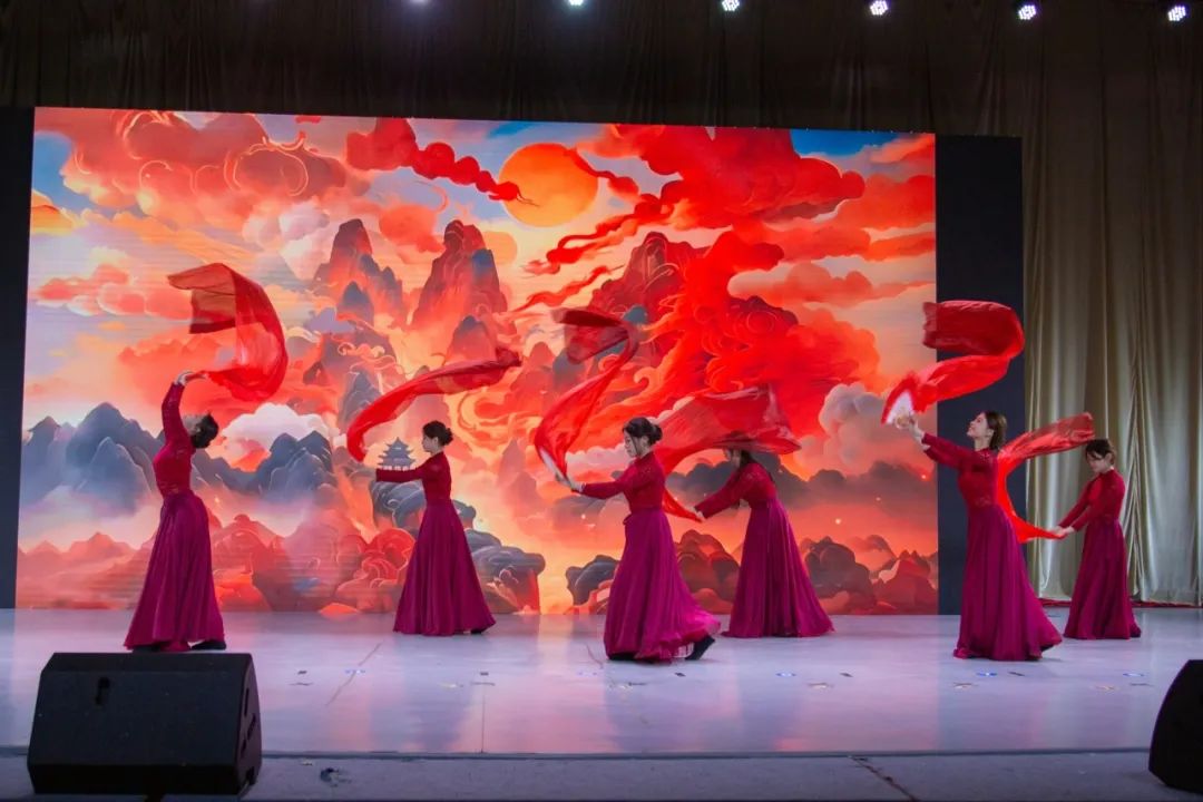 舞臺上,來自通用航空產(chǎn)業(yè)學院的舞者們身著一襲紅裙,似躍動的火焰。她們手持紅綢,身姿輕盈曼妙,隨著音樂節(jié)奏翩翩起舞。紅綢在空中飛揚,如天邊絢爛云霞,與背景中壯麗的山河圖景交相輝映。舞者們用靈動的肢體語言,演繹著傳統(tǒng)文化的深厚內(nèi)涵,一招一式間盡顯東方韻味?,F(xiàn)場觀眾沉浸其中,不時爆發(fā)出熱烈掌聲,這場舞蹈專場不僅是視覺的盛宴,更是對中華優(yōu)秀傳統(tǒng)文化的傳承與弘揚。