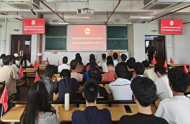 上午9點,通用航空產(chǎn)業(yè)學(xué)院組織全院教師在圖書館12樓會議室觀看紀(jì)念活動共同見證這一盛大莊嚴(yán)的歷史時刻。我院教師深受觸動,紛紛表示深感育人使命之重、責(zé)任之艱。在紀(jì)念中國人民抗日戰(zhàn)爭暨世界反法西斯戰(zhàn)爭勝利 80 周年這一特殊歷史節(jié)點,老師們一致認(rèn)為,抗戰(zhàn)精神是涵養(yǎng)青年家國情懷的寶貴源泉,必須將其深度融入教育教學(xué)與學(xué)生工作全過程。學(xué)院組織學(xué)生在教室和宿舍進行集中和自主觀看,讓學(xué)生了解歷史,引導(dǎo)學(xué)生愛國,讓他們真正成為 “心里有國家、眼里有方向、手里有力量” 的新時代青年。