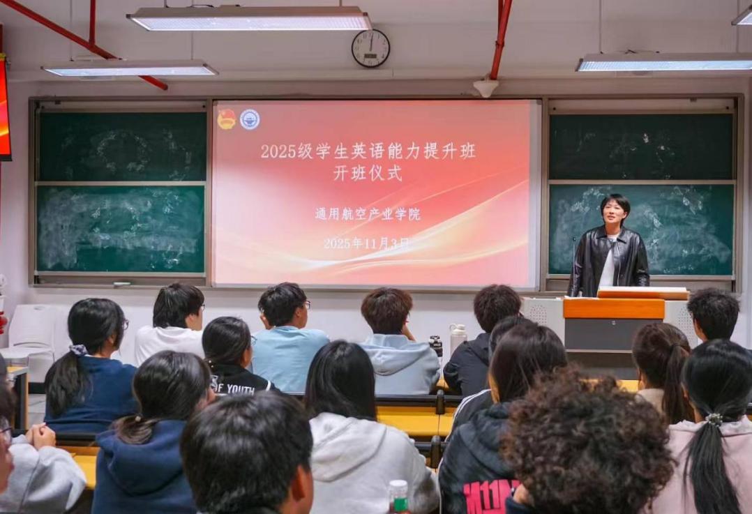 為全面提升學生英語綜合能力與素養(yǎng),助力學子備戰(zhàn)大學英語四級考試,11月3日,通用航空產(chǎn)業(yè)學院英語能力提升班開班儀式在藝新樓順利舉行。學院領(lǐng)導及專業(yè)負責人參加本次活動。