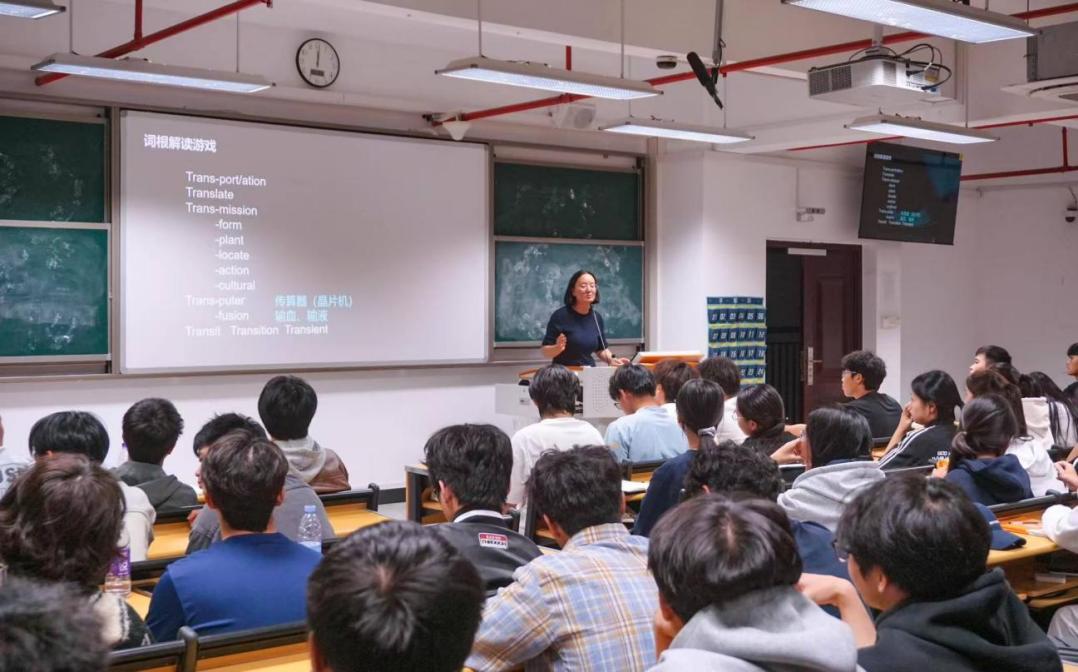 隨后,陳瑞娟老師呈現(xiàn)了一堂精彩課程。她從基礎(chǔ)語法講到詞根構(gòu)詞法,通過“Transportation”等實例,幫助學生在理解句子結(jié)構(gòu)的基礎(chǔ)上掌握詞匯記憶規(guī)律。同學們在活躍的課堂氣氛中實現(xiàn)了知識的融會貫通。