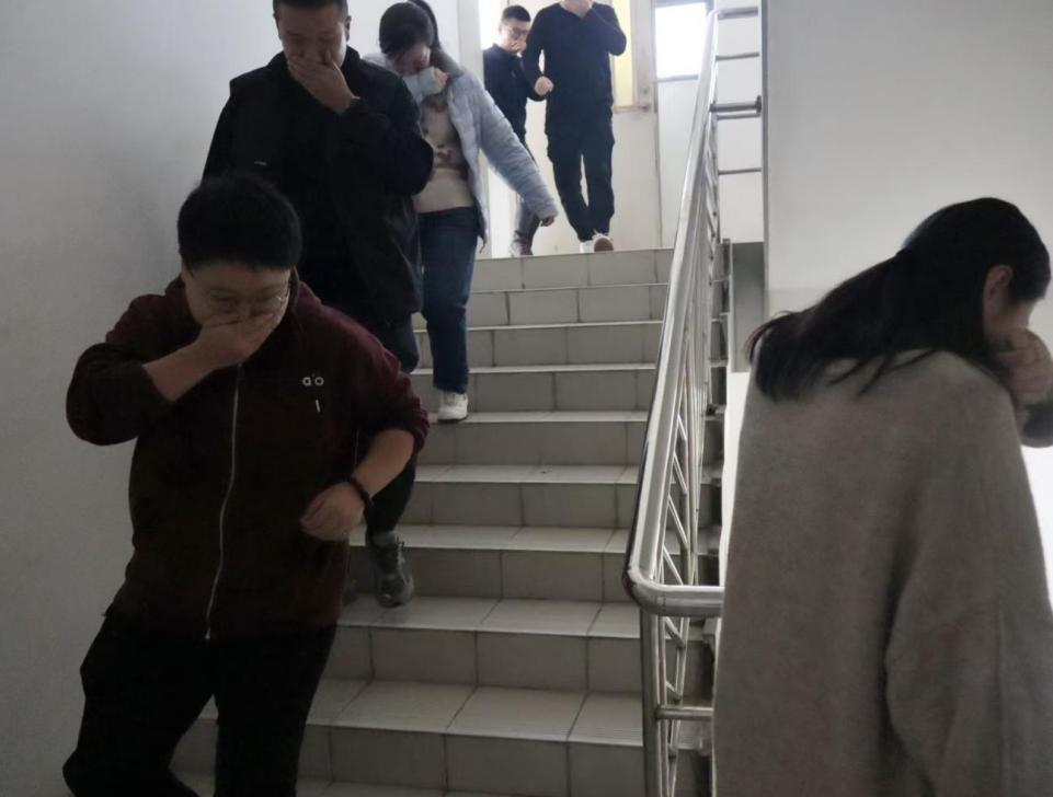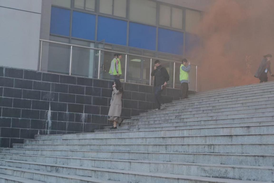 隨著警報(bào)聲響起,演練正式啟動(dòng)。全體教職工按照預(yù)設(shè)路線,彎腰捂鼻、快速有序地撤離至指定安全區(qū)域,全程做到不推擠、不慌張,充分展現(xiàn)了良好的應(yīng)急素養(yǎng)。部分教職工主動(dòng)擔(dān)任引導(dǎo)員,協(xié)助清點(diǎn)人數(shù)、維護(hù)秩序,保障疏散工作高效開展。其他參與單位也迅速完成疏散集結(jié),整個(gè)過(guò)程規(guī)范有序。