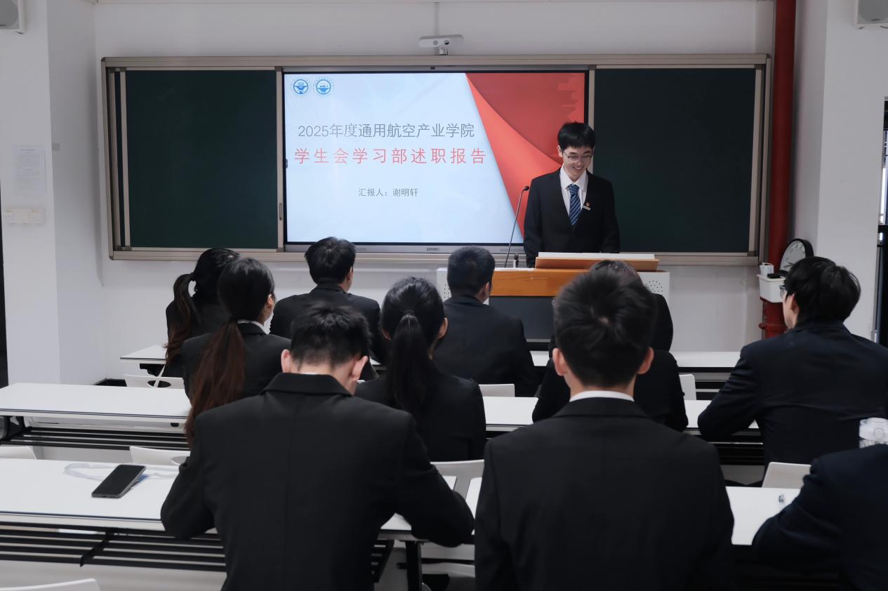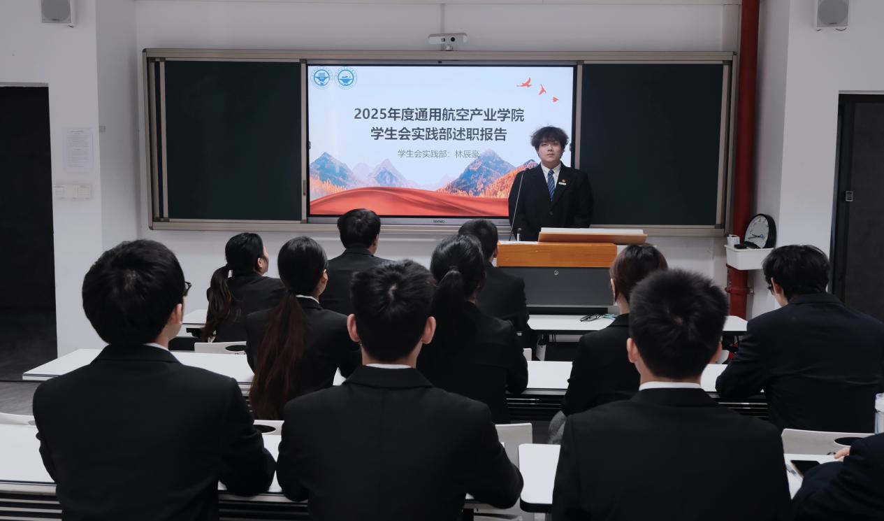 為全面總結(jié)年度工作,通用航空產(chǎn)業(yè)學(xué)院學(xué)生會(huì)召開2025年度述職大會(huì),學(xué)院學(xué)生會(huì)全體成員參會(huì),依次上臺(tái)匯報(bào)。