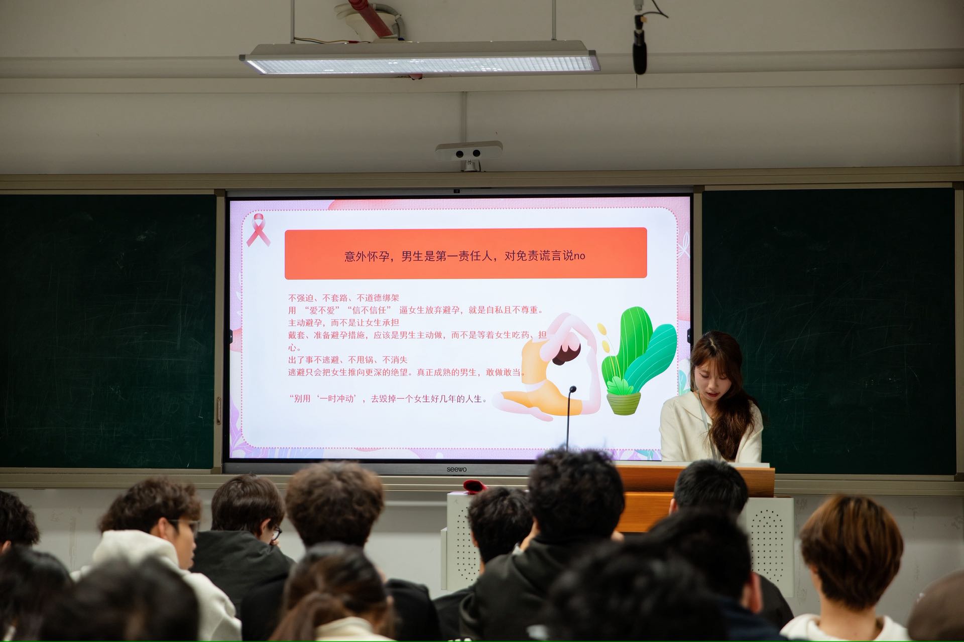 本次活動以專題講座形式開展,主講人圍繞大學生生理心理特點,講解生殖健康知識、避孕方式與意外懷孕應對措施,結(jié)合案例糾正認知誤區(qū)。現(xiàn)場設(shè)置互動答疑環(huán)節(jié),引導學生樹立正確觀念,提升自我保護與責任意識,守護自身健康。