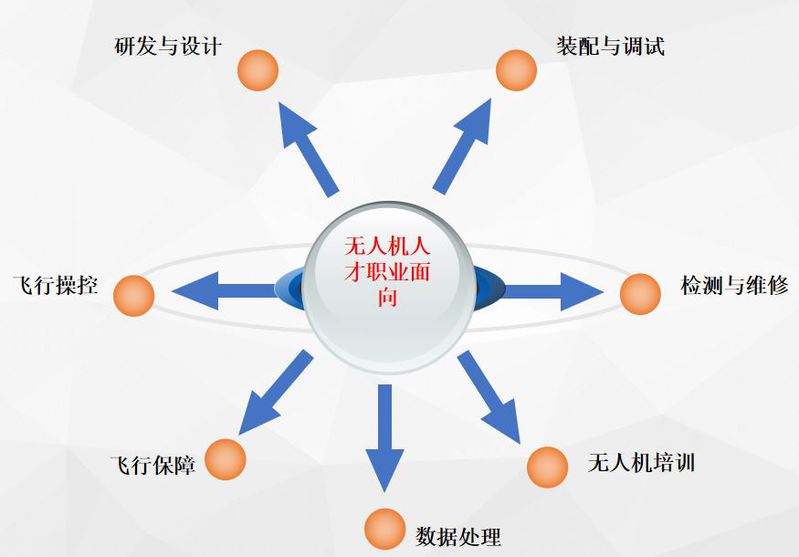 就業(yè)面向:學生畢業(yè)后,可從事無人機生產(chǎn)、測試與維修崗位,也可從事農(nóng)林植保、無人機電力巡檢、航拍測繪、國土資源勘察與監(jiān)測、應急救援、城市交通監(jiān)控、公路巡檢、無人機培訓、無人機教育等領域工作。