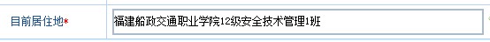 特別提示:學(xué)生請在登記頁面的目前居住地欄填寫“福建船政交通職業(yè)學(xué)院+完整的班級年段信息”范例如下.