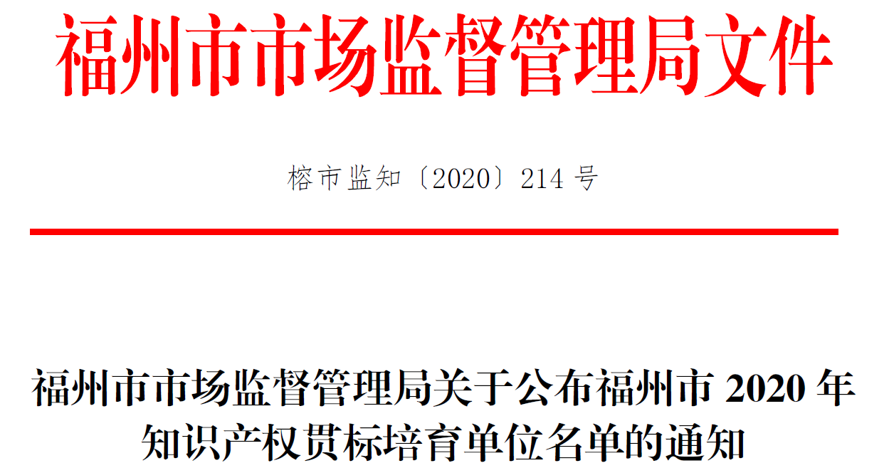 根據國家、省、市相關疫情期間支持復工復產文件通知要求和《福州市自主知識產權資助和獎勵辦法》(榕政綜[2018]210號)精神,經申請,福州市知識產權局、市場監(jiān)管局推薦,我校被確定福州市2020 年知識產權貫標培育單位。