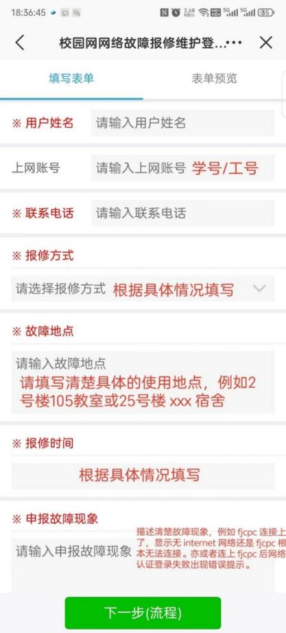 6.3填寫完畢故障信息提交表單后點(diǎn)擊下一步(流程)