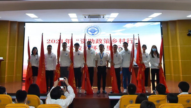 活動儀式上,學(xué)生工作處王心金處長為“家校關(guān)懷萬里行”9個小分隊進行授旗。