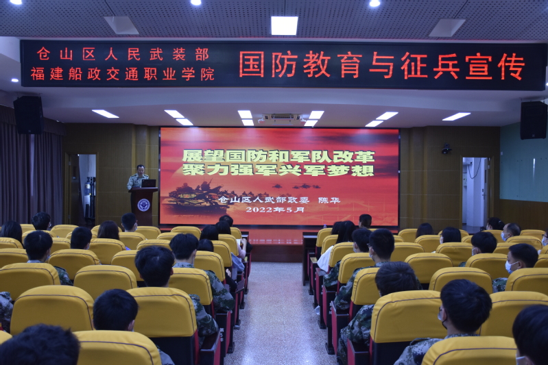 為切實(shí)加強(qiáng)我院大學(xué)生國(guó)防教育、做好征兵入伍宣傳動(dòng)員工作,激發(fā)學(xué)子的家國(guó)情懷,5月12日上午,在1號(hào)樓學(xué)術(shù)報(bào)告廳舉辦了國(guó)防教育主題講座暨征兵宣傳進(jìn)校園活動(dòng)。倉(cāng)山區(qū)人民武裝部政委陳華應(yīng)邀出席活動(dòng)并作專(zhuān)題講座,學(xué)生工作部部長(zhǎng)王心金及各二級(jí)學(xué)院輔導(dǎo)員代表和有意參軍的學(xué)生代表200余人參加,學(xué)生工作部副部長(zhǎng)鄧本超主持會(huì)議。
