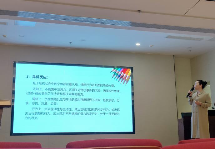 高華教授通過(guò)深入淺出的講解和豐富的案例分析,為輔導(dǎo)員們提供了寶貴的知識(shí)和經(jīng)驗(yàn)分享。講座內(nèi)容涵蓋了心理危機(jī)的識(shí)別、預(yù)防策略、干預(yù)方法以及如何構(gòu)建有效的支持系統(tǒng)等多個(gè)方面。高華教授特別強(qiáng)調(diào)了早期識(shí)別和及時(shí)干預(yù)的重要性,并提供了實(shí)用的溝通技巧和心理支持策略。