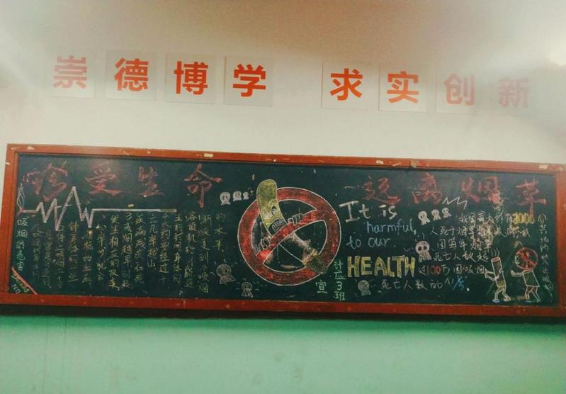為加強(qiáng)宣傳力度,營造禁煙氣氛,組織并要求班級進(jìn)行禁煙專題系列的黑板報(bào)設(shè)計(jì)。