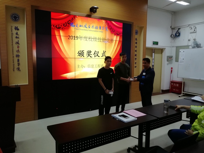 本次比賽共進(jìn)行云計算&&信息安全—LINUX系統(tǒng)管理技術(shù)、VR虛擬現(xiàn)實建模技術(shù)、平面設(shè)計技術(shù)、Python程序設(shè)計與應(yīng)用、移動互聯(lián)應(yīng)用開發(fā)、軟件測試等6個賽項的角逐,參與學(xué)生達(dá)到130人,最終有10位同學(xué)獲得了一等獎。10月31日下午,信息工程系孫基書記,黃金鳳主任,以及本次比賽獎品贊助商優(yōu)創(chuàng)課堂的張欽華總經(jīng)理,系部各賽項的指導(dǎo)老師和同學(xué)參加了頒獎儀式。