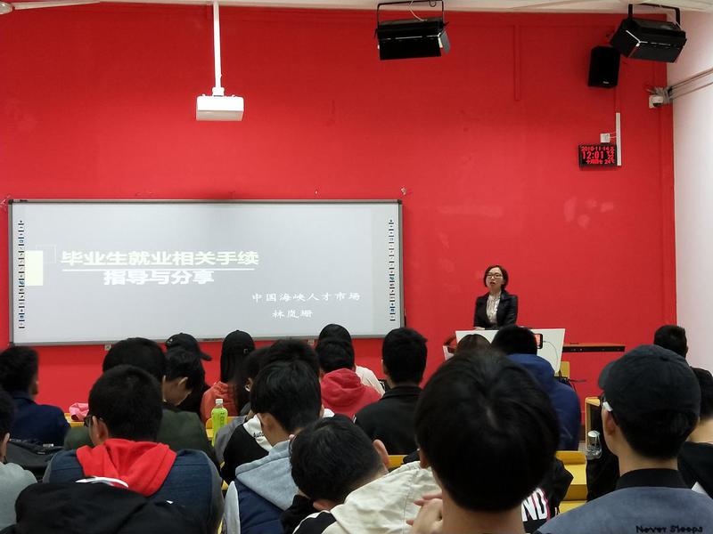 信息工程系于2018年11月14日中午12:00至下午13:00在北區(qū)2#1-5舉辦了信息工程系“畢業(yè)生就業(yè)指導與分享”講座,由中國海峽人才市場林嵐珊小姐主講。林小姐講到當前畢業(yè)生就業(yè)的幾大問題以及相關解決方法,說到畢業(yè)生就業(yè)的五個關鍵詞:1.檔案2.就業(yè)協(xié)議書3.報到證4.黨組織關系5.戶口遷移證。