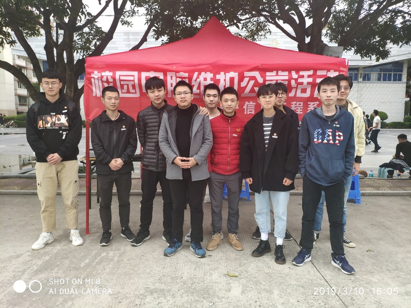 慶祝團的十八大,我系開展放下手機,走出宿舍,走向活動校園電腦義務(wù)維護公益活動。2019年3月10日上午,信息工程系的青年協(xié)會志愿者來到學(xué)校文化墻旁,開展本次活動,為同學(xué)及老師義務(wù)維修、維護計算機,同時還為同學(xué)講解了計算機日常使用和維護的知識。