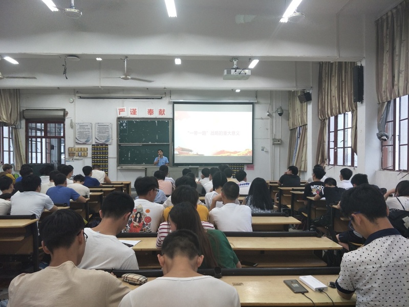 2018年09月19日下午,信息工程系書記孫基在北區(qū)土建樓第四階梯教室給系部學生干部入黨積極分子上了一堂生動的“一帶一路”倡議的重大意義的形勢政策課,在課上,孫基書記就 “一帶一路”倡議的重要意義,“一帶一路”建設面臨的新機遇以及“一帶一路”對大學生們的機遇與挑戰(zhàn)進行闡述,讓上課的同學們受益匪淺。