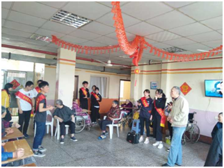 活動(dòng)中,他們的團(tuán)結(jié)合作,精心準(zhǔn)備為老人們送去了愛心,送去了溫暖,走進(jìn)了安心護(hù)理院開展慰問敬老活動(dòng),為那里的孤寡老人們帶去了最純真的關(guān)懷和最溫馨的祝福。