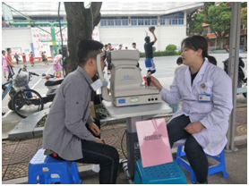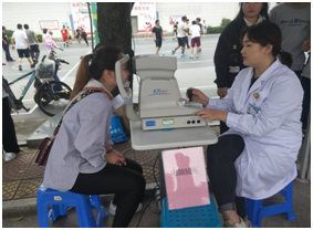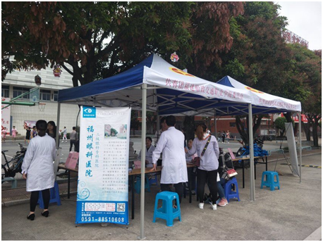 講座結(jié)束后,來自眼科醫(yī)院的醫(yī)生在文化墻為師生提供免費(fèi)眼科體檢和眼部健康知識宣傳活動,義診檢查的內(nèi)容主要包括視力表測試、專業(yè)檢測機(jī)器,宣講用眼、護(hù)眼、預(yù)防眼病知識,提高師生用眼健康意識。學(xué)校70多名師生參加體檢。義診現(xiàn)場向師生發(fā)放了眼科疾病預(yù)防、眼部保健等宣傳資料手提袋80多份。