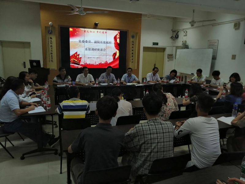 為了解我系開(kāi)展“不忘初心、牢記使命”主題教育情況,指導(dǎo)主題教育走向深入,為下一階段工作夯實(shí)基礎(chǔ),10月17日下午,學(xué)院黨委委員、副院長(zhǎng)張祖柱率后勤、安辦、基建職能部門(mén)到我系開(kāi)展主題教育工作調(diào)研,信息工程系教職工代表、學(xué)生代表參加了座談會(huì)。