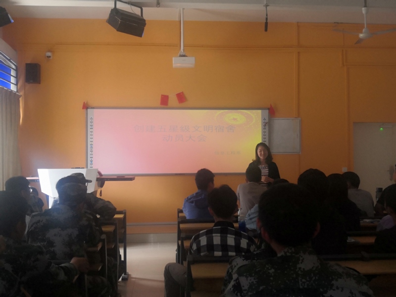 本次動(dòng)員大會(huì)旨在貫徹落實(shí)“不忘初心、牢記使命”主題教育總要求,激發(fā)了同學(xué)們對(duì)“創(chuàng)建五星級(jí)文明宿舍”活動(dòng)的熱情和信心,為文明宿舍創(chuàng)建活動(dòng)的良好開展做了很好的精神動(dòng)員。