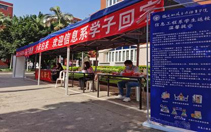 我系工作人員早早就來到信息工程系報(bào)到點(diǎn)等各個(gè)工作崗位,有條不紊地迎接同學(xué)們返校。