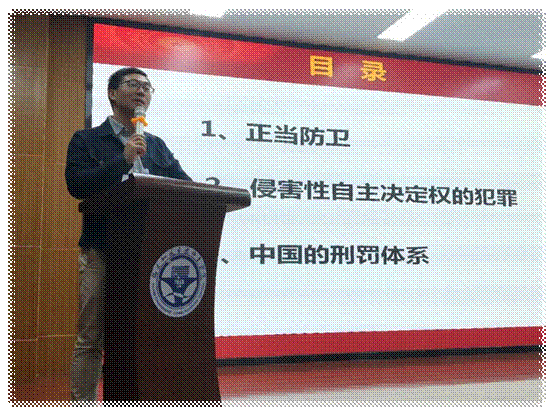 晚上19時,法律案例講座在北區(qū)學校的1號辦公樓開講。此次講座由我院彭志允老師主講,主要向我們要介紹如何正當防衛(wèi)、防止侵害性自主決定權的犯罪以及中國刑罰體系的法律知識。
