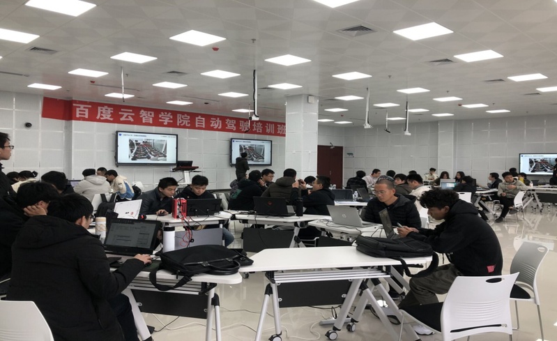 12月21日上午由百度云智學院認證講師陸俊和馮宗寶為學生提供自動駕駛技術的理論知識。下午由馮宗寶老師帶領學生學習實驗平臺與基礎知識并進行了在線實驗、實車操控。在輕松愉悅的學習環(huán)境下,第一天悄然過去。