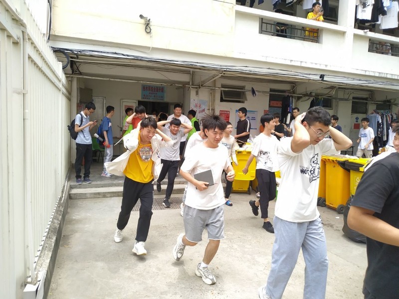 一陣警報聲拉開了演練的序幕,本次演練主要包括避險、疏散兩個流程。演練開始后,全體同學(xué)在班委的組織下,迅速就地進行應(yīng)急避險。在收到緊急避險結(jié)束立即疏散的指令后,大家迅速有序地從教室、宿舍撤離,沿著規(guī)劃好的路線迅速撤離,抵達指導(dǎo)避難點。